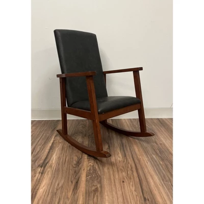 The Gift Mark Children’s Fully Upholstered Rocking Chair in Cherry colored Wood , and brown leather like upholstery. This chair will make a great statement no matter where it is placed. Children will race to be the first to sit in this children’s sized chair. This comfortable Rocking Chair, rocks smoothly, and is a wonderful choice to fill out your dĂ©cor. Made using Rubberwood, this sturdy chair arrives with tools needed for assembly.