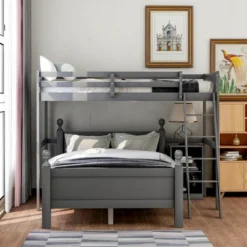 Twin Over Full Bunk Bed With Ladder And Safety Guardrail-ModernLuxe