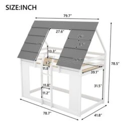 Twin Over Twin Wood Bunk Bed With Roof, Window, Guardrail, And Ladder-ModernLuxe